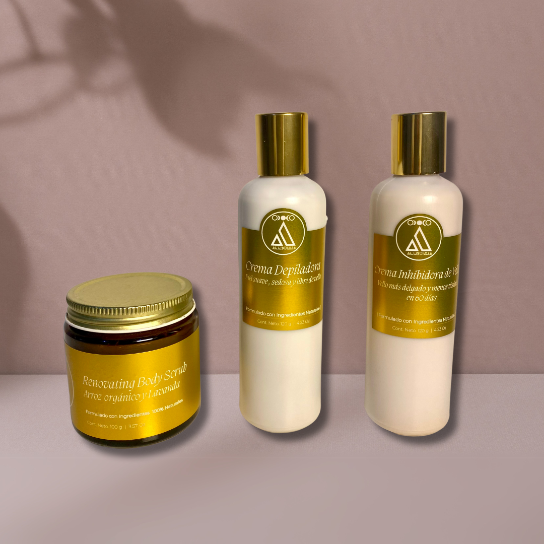 Consigue una piel lisa y libre de vello con nuestro Kit de Depilación, la cual incluye: